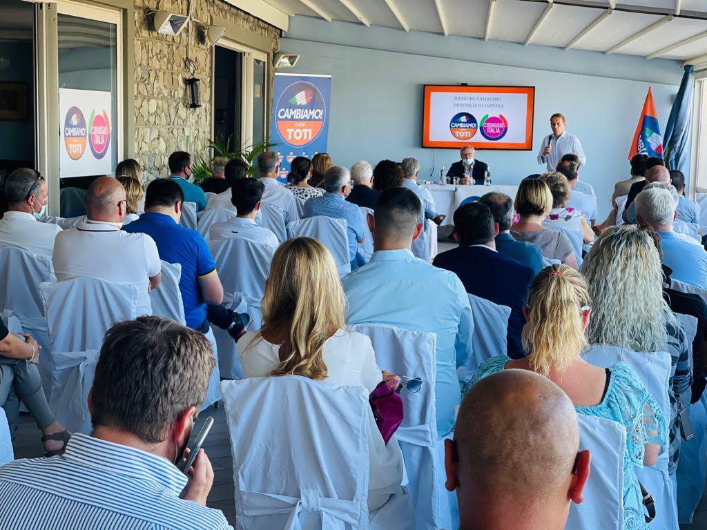 Si è tenuta, a Santo Stefano al Mare, presso il porto di Aregai, la riunione provinciale di Cambiamo con Toti, il partito più votato durante le ultime consultazioni regionali liguri, in particolare in provincia di Imperia ha raggiunto il risultato ragguardevole del 25,6 %. Un incontro molto partecipato, organizzato dall’assessore regionale Marco Scajola e dal coordinatore provinciale del movimento Pino Di Meco.