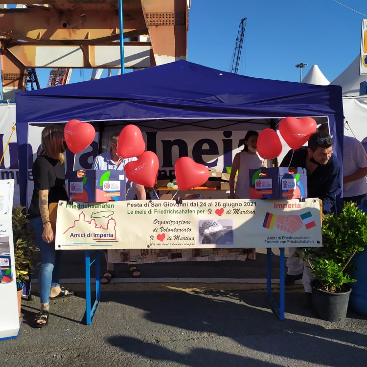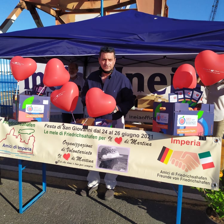 La Festa di San Giovanni si arricchisce di una iniziativa di grande valenza umana promossa dall’associazione tedesca “Amici di Imperia”, attiva da oltre dieci anni a Friedrichshafen, sulle rive del lago di Costanza, dapprima per promuovere il gemellaggio con la nostra Città e poi per ravvivarlo continuamente con azioni significative. L’associazione si è impegnata in una iniziativa a favore di una realtà di primo piano nel mondo del volontariato imperiese: “Il Cuore di Martina o.n.l.u.s.”.