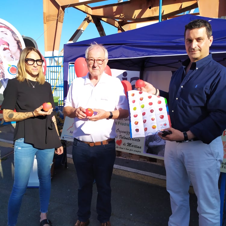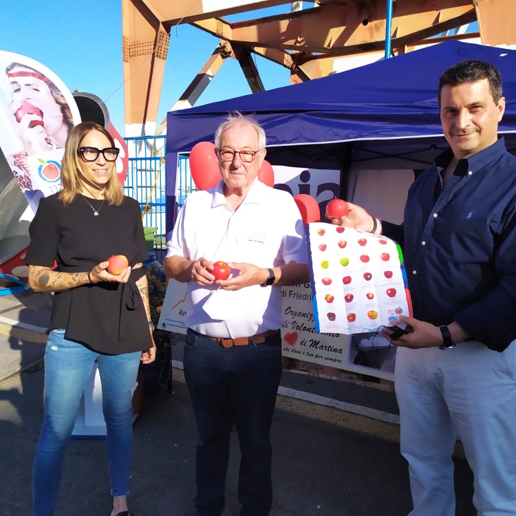 Volevamo rendere una mela e fare un dono per il Cuore di Martina. Il nostro vice sindaco mi ha fatto un assegno di 500€ per il Cuore di Martina.
