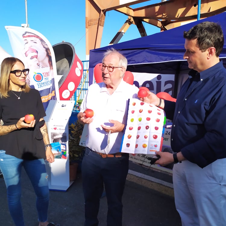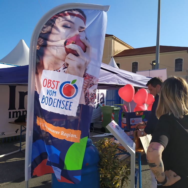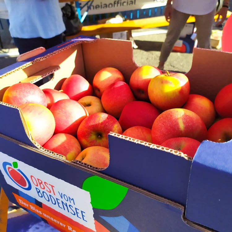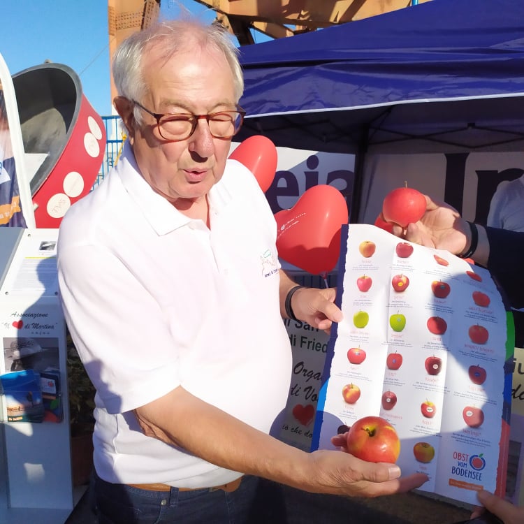 Da noi , sul lago di Costanza c’è un’area di mele molto grande, forse il secondo più grande della Germania, clima ottimo per le mele. Queste mele si chiamano Evelina, hanno la forma di un cuore. Il Cuore per il Cuore di Martina”.