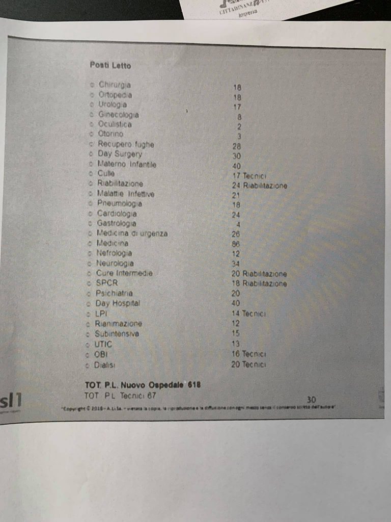 E quanti posti letto sarebbero previsti ? Ci sarebbero nuovi reparti oltre a quelli presenti ? E il presidio di Bordighera , privatizzato , come sarà dimensionato ? Avrà il Pronto Soccorso come andava sostenendo l’ex assessore Viale? Con quali reparti e quanti posti letto ? Cosa resterebbe a Imperia dopo la chiusura dell’ospedale?