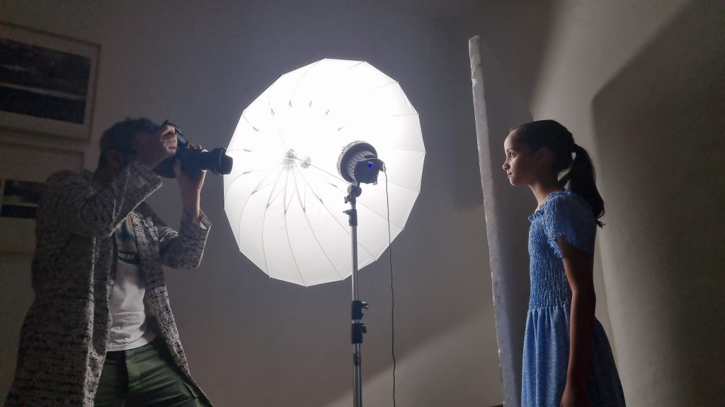 Cosa succede qui dentro? Si fanno ritratti, ritratti come una volta. Come quelli degli artigiani fotografi nell’800, in bianco e nero, che rimangono ai nipoti e rendono un preciso istante indelebile per sempre.