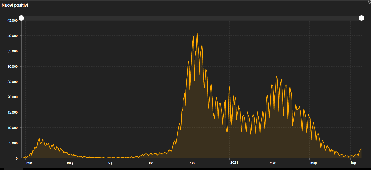 Tutte le regioni d’Italia hanno fatto registrare almeno un caso; la Valle d’Aosta risulta essere la meno colpita dall’emergenza Covid, con solamente 2 nuovi contagi.