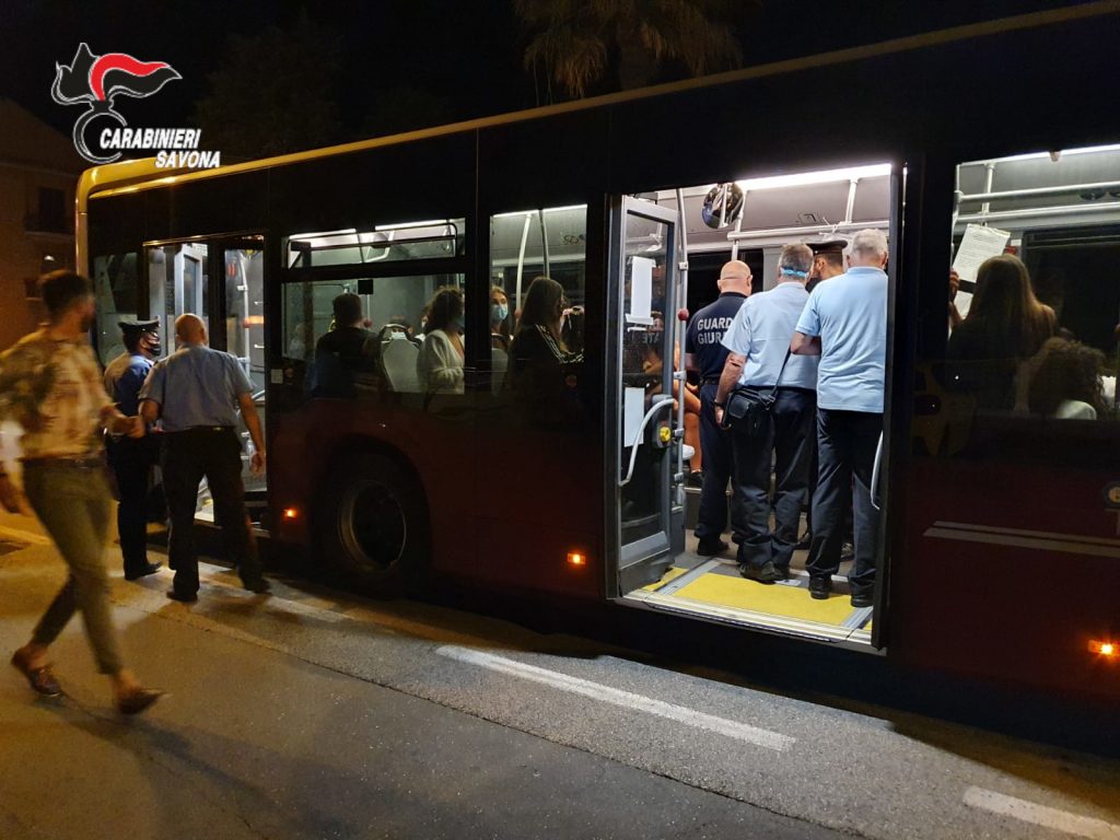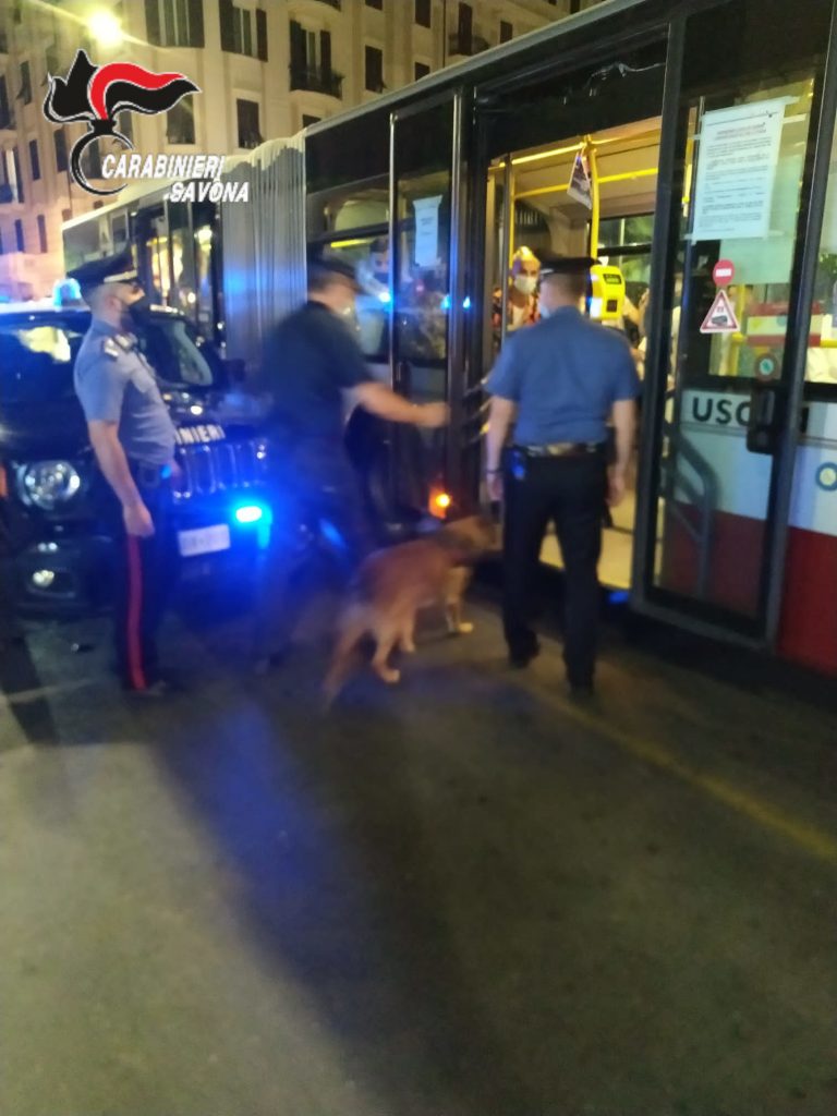 Nel fine settimana, un articolato dispositivo di uomini e mezzi dell’Arma ha interessato la fascia costiera da Varazze fino ad Andora, inclusa la Val Bormida, con l’ausilio delle unità cinofile dei Carabinieri. Domenica notte tutti i reparti dipendenti della Compagnia Carabinieri di Alassio hanno effettuato controlli sia nei pressi delle fermate degli autobus, sia all’interno dei mezzi di servizio, elevando alcune contravvenzione a coloro che non avevano la prevista mascherina per l’emergenza sanitaria.