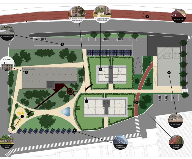 Il progetto, realizzato con il supporto della società Avalon, prevede alloggi destinati a edilizia sociale-agevolata, spazi per le attività delle associazioni cittadine, una nuova palestra e un’ampia area verde con pista ciclabile.