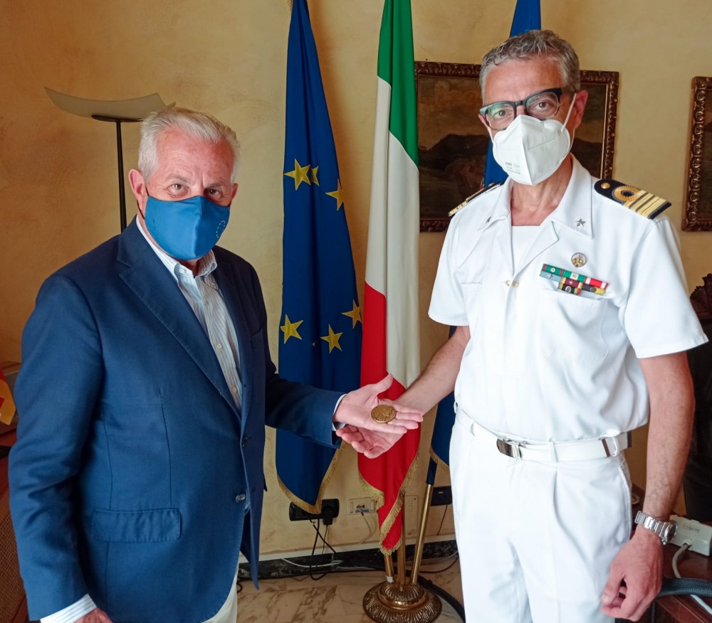 Durante lo scambio dei presenti, il Comandante ha donato al primo cittadino la medaglia della Capitaneria di Porto di Imperia con il tradizionale rito del passaggio attraverso una stretta di mano, simbolo di legame ed amicizia.