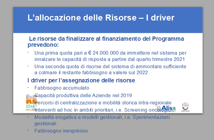 “L’obiettivo primario – spiega il presidente e assessore alla Sanità Giovanni Toti – è smaltire le liste di attesa e recuperare tutte le attività sanitarie che, a causa della pandemia, sono state ridotte o sospese, mentre gli ospedali, le strutture sanitarie e tutti gli operatori della Liguria erano impegnati, 24 ore su 24, nel reggere l’onda d’urto del Covid. L’obiettivo di medio e lungo periodo è invece quello di abbattere i tempi di erogazione delle prestazioni sanitarie e ridurre la cosiddetta mobilità in uscita, ovvero le fughe dei pazienti liguri che scelgono di curarsi fuori dai confini regionali, creando dei poli specializzati che incrementino la capacità attrattiva della sanità ligure”.