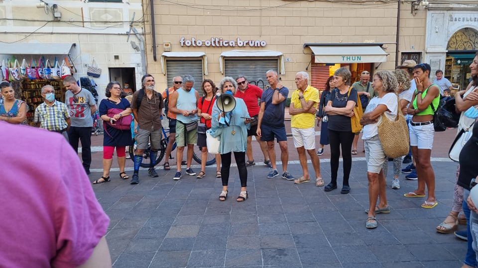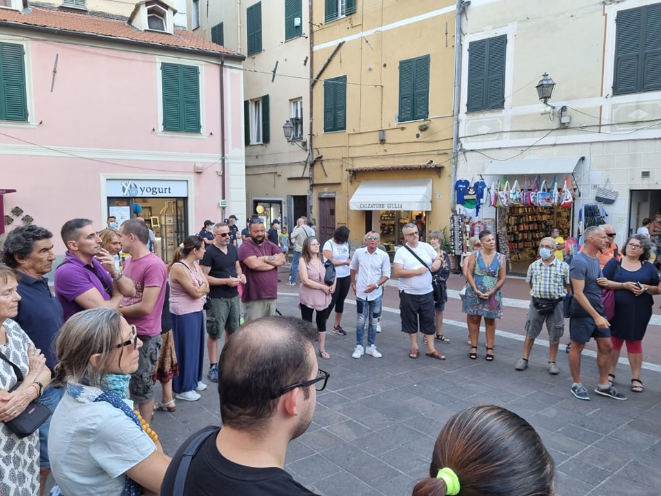 Nuova protesta contro il green pass, questo pomeriggio, a Imperia, come in molte altre città d’Italia. In piazza San Giovanni, a Oneglia, si sono riunite circa 50 persone, alcune delle quali hanno preso la parola, con l’ausilio di un megafono, per esprimere la propria opinione sull’argomento.