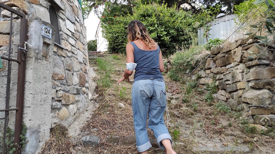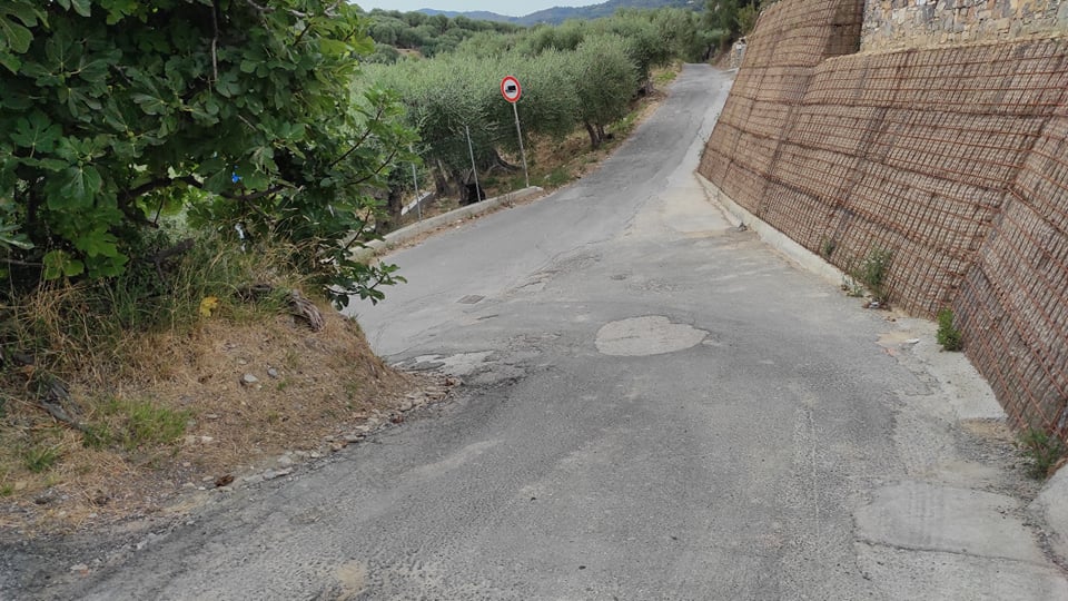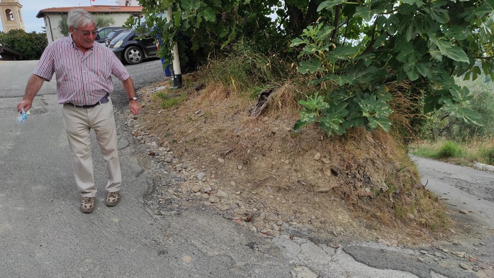 “Nel borgo c’è una situazione di degrado continua. Recentemente ci hanno anche tolto la possibilità di avere il servizio pullman. Il pullman non riusciva più a girare e tornare indietro. Ogni volta che saliva qui a Massabovi toccava sotto perché troppo stretto. Da quando hanno realizzato questa muraglia alla mia destra (vedi video, ndr) le cose sono ulteriormente peggiorate, ecco perché l’autobus non viene più. Abbiamo così perso un servizio che la Riviera Trasporti ci aveva messo a disposizione poco tempo fa. C’è ancora il cartello della fermata, ma l’autobus non arriva più.