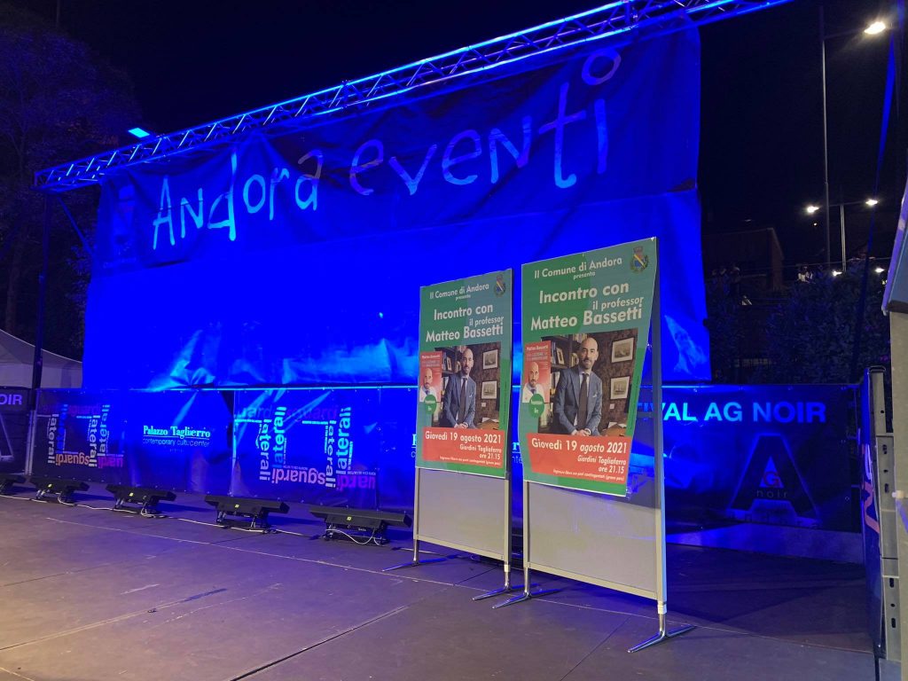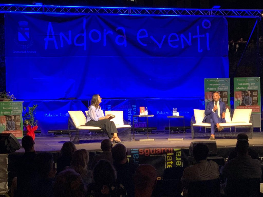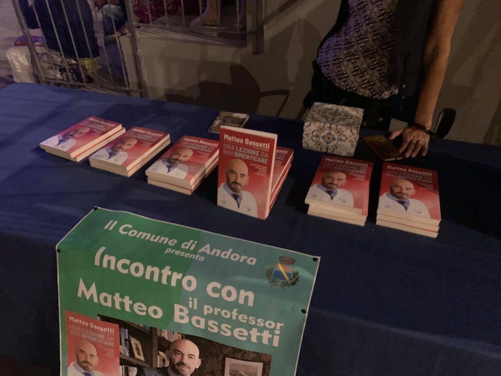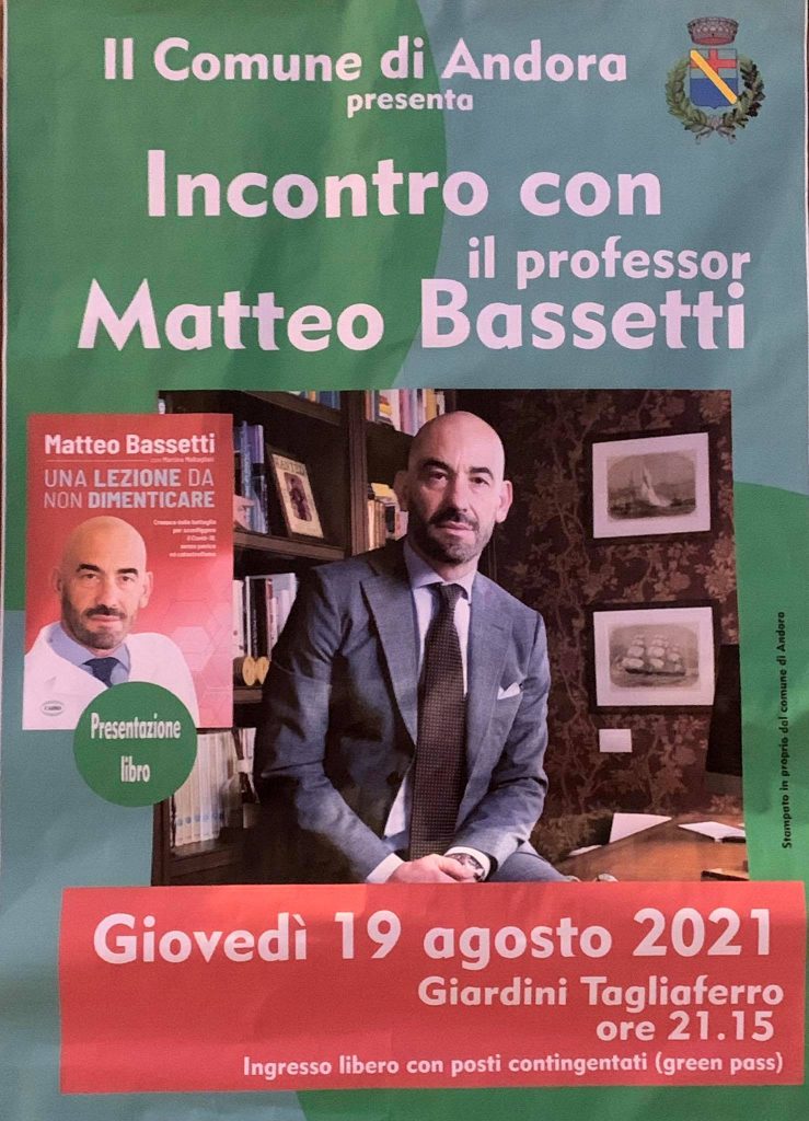 Ieri sera i giardini di Palazzo Tagliaferro ad Andora hanno ospitato l’unico incontro pubblico in Liguria con Matteo Bassetti, virologo, direttore del reparto Malattie infettive dell’ospedale San Martino di Genova. Bassetti ad Andora ha presentato il suo libro “Una lezione da non dimenticare”, incentrato sul dramma del Coronavirus.