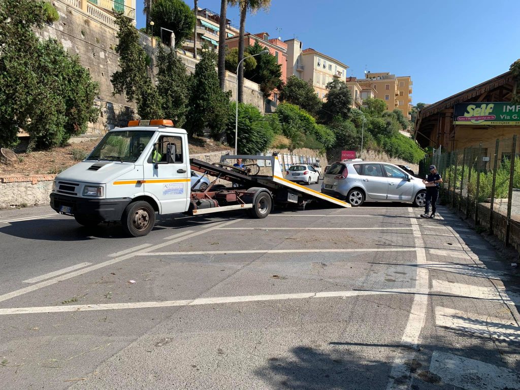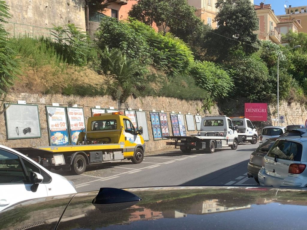 Una ventina le auto lasciate in sosta vietata, alcune peraltro con multe precedenti sul parabrezza, a testimoniare che i proprietari da tempo non le spostavano. Sono stati fatti intervenire cinque carri attrezzi, coordinati dalla Polizia locale, che, per rimuovere le auto in divieto hanno dovuto bloccare la careggiata, causando così lunghe code in via Battaglione Alpini Pieve di Teco e lungo la soprastante via Aurelia.
