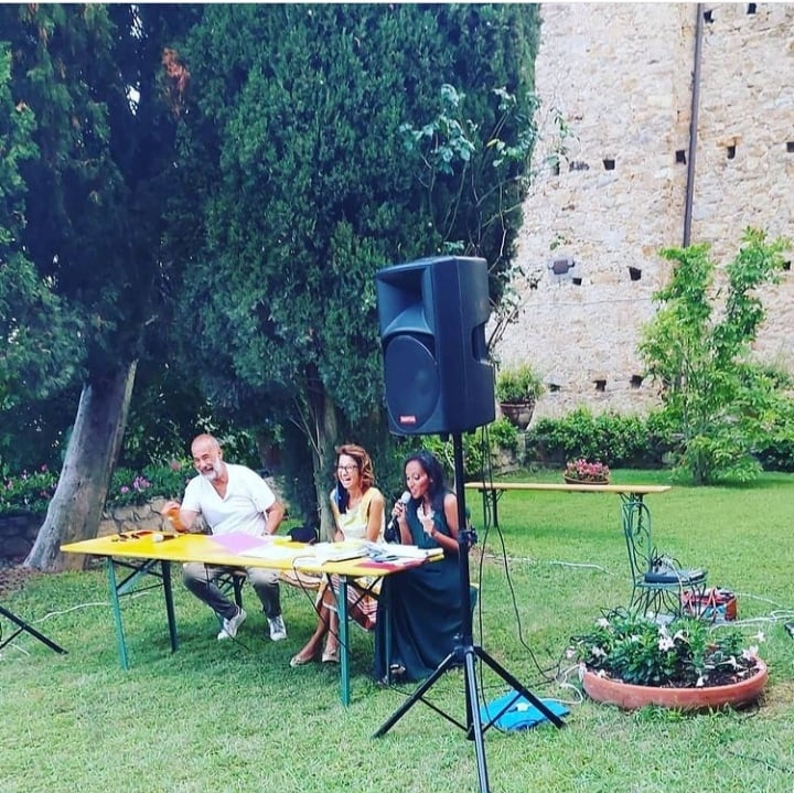 Finito il caldo del giorno, con meticolosa cura del distanziamento e seguendo ogni norma di sicurezza, i settanta invitati si siedono nell’incanto di un panorama seducente.