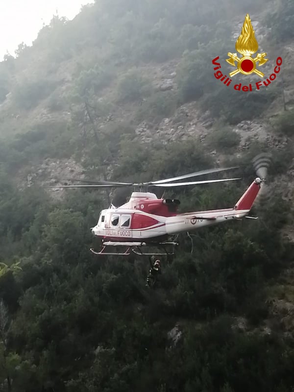 Sono intervenute squadre del Comando provinciale di Imperia, la prima partenza di Ventimiglia, una squadra Saf di Imperia e una di Sanremo, oltre all’elicottero proveniente da Genova.