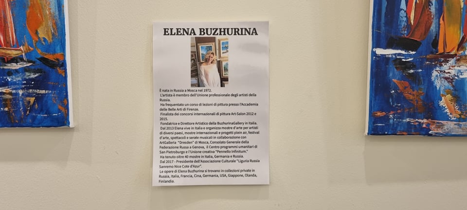 Sono presenti paesaggi, sia liguri che russi. Io vivo qui in Liguria da 8 anni. Presento l’arte russa moderna, la faccio conoscere al pubblico italiano.