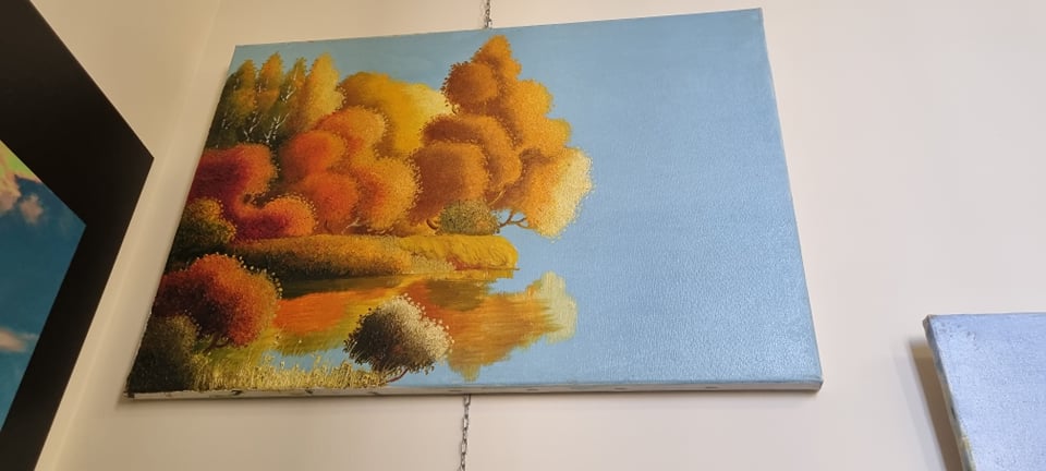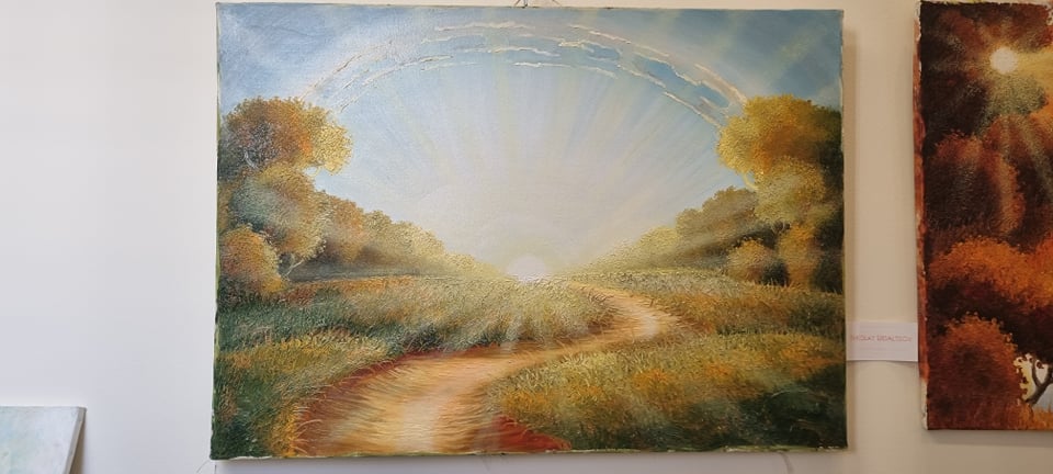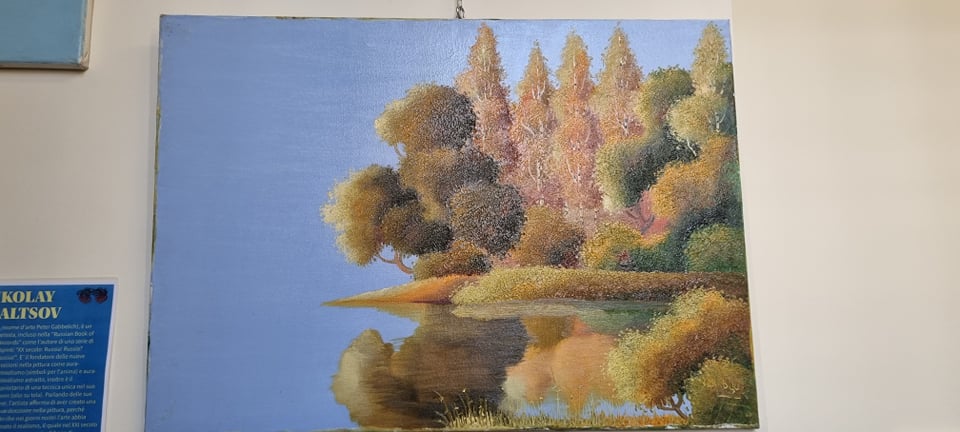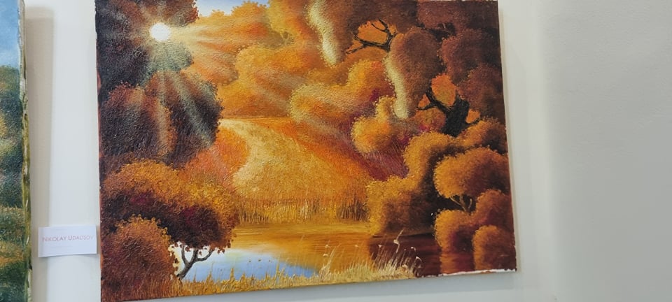 Ci sono anche quadri di Nikolay Udaltsov un pittore di Mosca, che è mancato tre settimane fa. È rimasto nei nostri cuori e nei nostri pensieri, grazie a questi bellissimi paesaggi che ha dipinto.