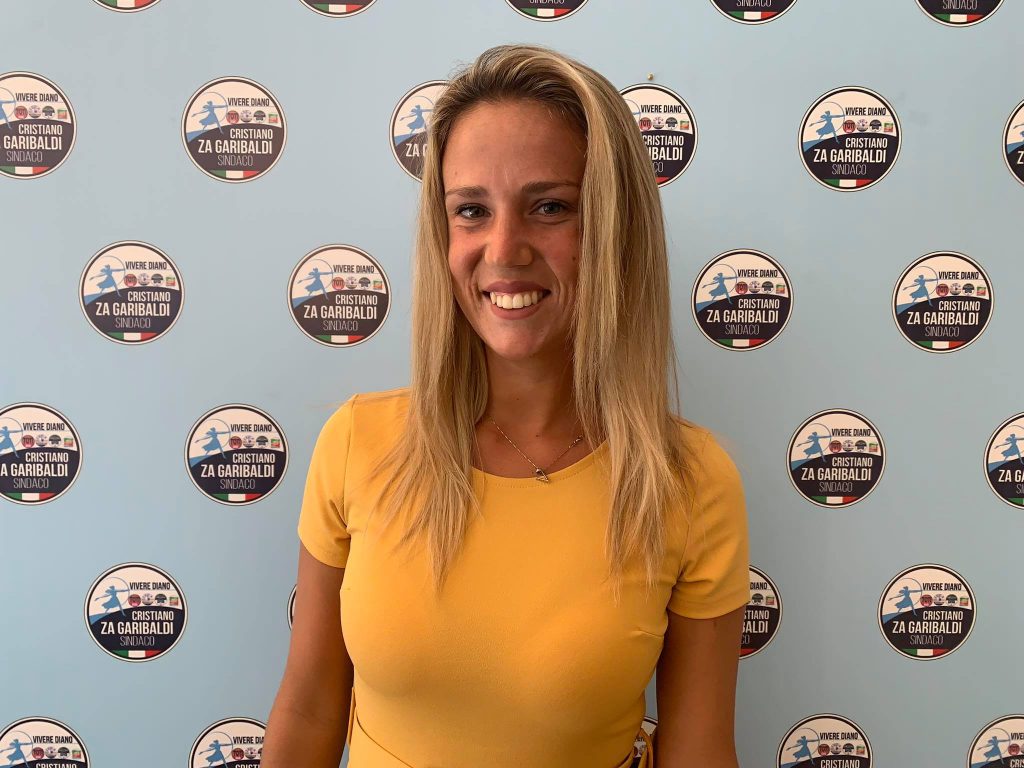- VERONICA BRUNAZZI, 32 anni, titolare di erboristeria. Nata e cresciuta a Diano Marina, è sposata con Alberto ed è mamma di Dante. È consigliere comunale uscente con delega a sport, anagrafe, informatizzazione e politiche giovanili e presidente della Commissione toponomastica. Appassionata di sport, giocava a pallavolo e oggi si diletta con beach volley e camminate. È una persona solare e dolce ma molto tenace, a cui piace affrontare le sfide che la vita le mette davanti puntando dritta ai suoi obiettivi. È una persona sensibile, amante della natura e degli animali. Dedica le sue giornate al lavoro, che ama e svolge con passione e dedizione, e alla famiglia, con la quale condivide sia la quotidianità che le nuove esperienze e soprattutto i viaggi. In questi 5 anni di amministrazione ha lavorato molto anche per la città che ama e a cui vuole continuare a dedicare il suo tempo e il suo impegno.