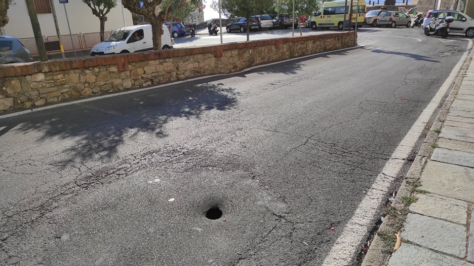 Non è passato inosservato il buco che si è formato quasi al centro della carreggiata in via Vianelli. Alla redazione di ImperiaPost, infatti, sono pervenute diverse segnalazioni di cittadini preoccupati per la pericolosità che la piccola voragine può rappresentare per gli utenti della strada, in modo particolare per i conducenti di ciclomotori.