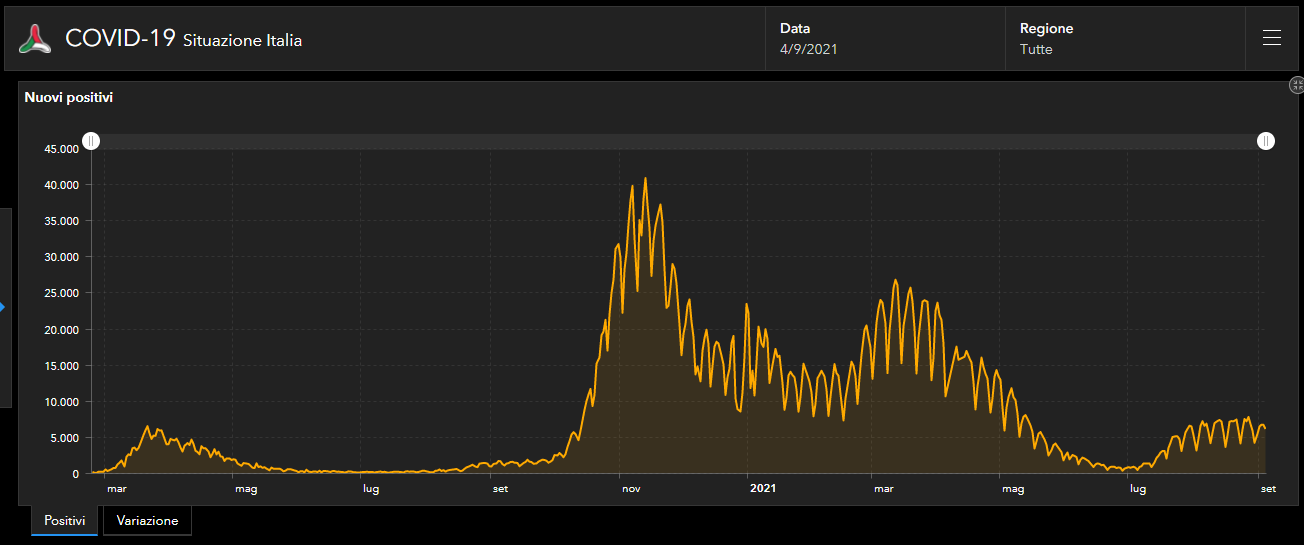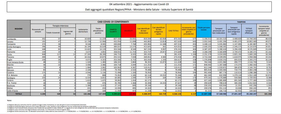 Tutte le regioni d’Italia hanno fatto registrare almeno un caso nelle ultime 24 ore. La Valle d’Aosta risulta essere la meno colpita, con solamente 3 casi.