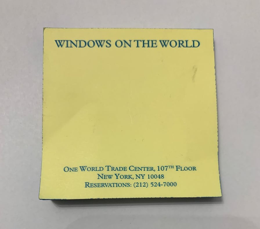 Questo è un blocchetto di post-it che tenevo sulla mia scrivania e che, il giorno prima dell’11 settembre, avevo infilato nella tasca dei miei pantaloni”.