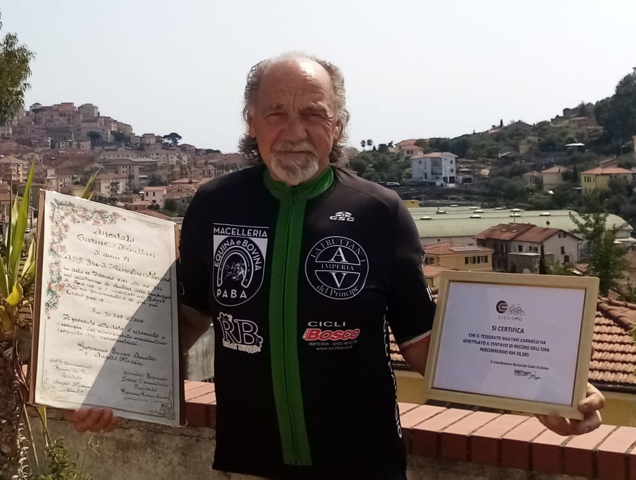 “Che soddisfazione”. Queste le parole di Carmelo Multari, 72enne imperiese, con due protesi alle anche, che, lo scorso febbraio, ha sfidato il “record dell’ora” in bicicletta al velodromo di Andora. ImperiaPost lo aveva seguito in diretta nella sua impresa (clicca qui per rivivere l’emozione di quel giorno).