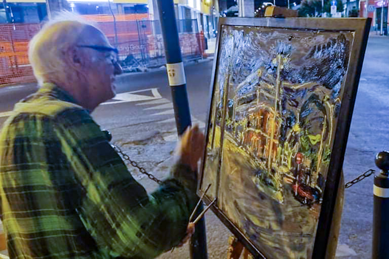 È proprio quello che è successo alcune sere fa in via della Repubblica. Il protagonista è Roberto Anfossi, noto pittore sanremese, con una lunga e proficua carriera alle spalle, che, nel corso della serata, ha lasciato senza parole i passanti.