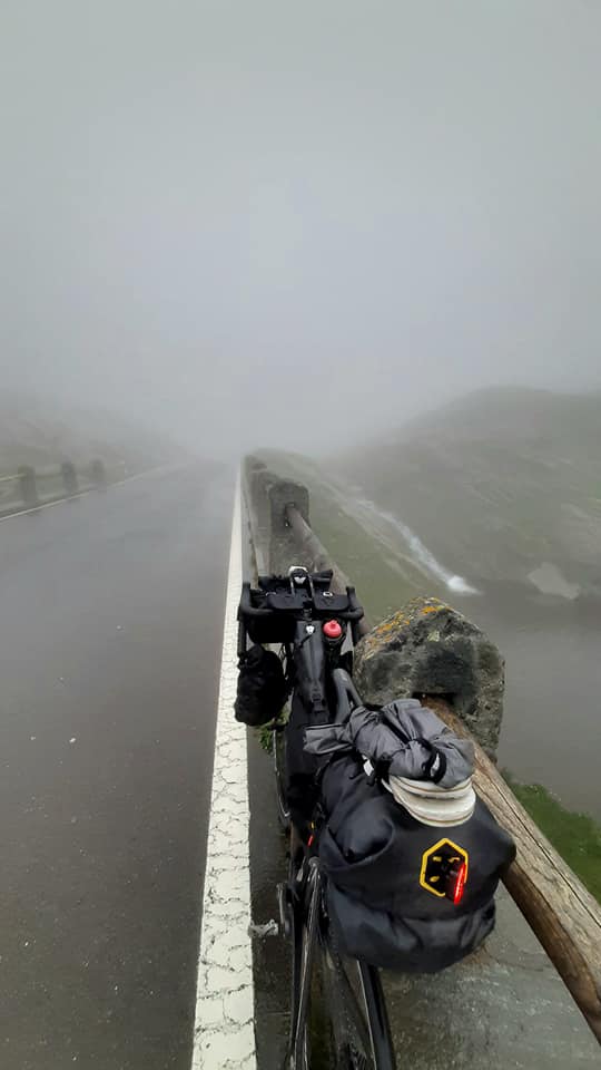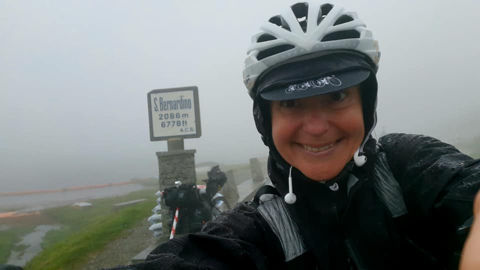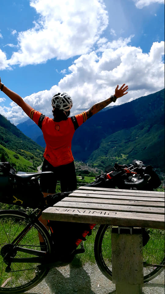 “Non è stato così faticoso. Dopo i primi 3 giorni di pioggia intensa e ininterrotta mi sono abituata. Il momento più intenso è stato quando sono salita su San Bernardino, non ci credevo. La bici pesava tantissimo, non ero molto allenata e le condizioni meteo erano bruttissime, c’era la nebbia fitta, non si vedeva nulla, pioveva e faceva freddo. Quando sono arrivata in cima mi sono detta: ‘ce l’ho fatta’”.