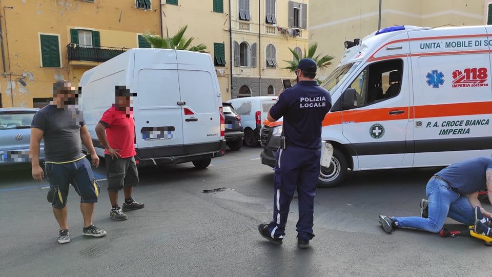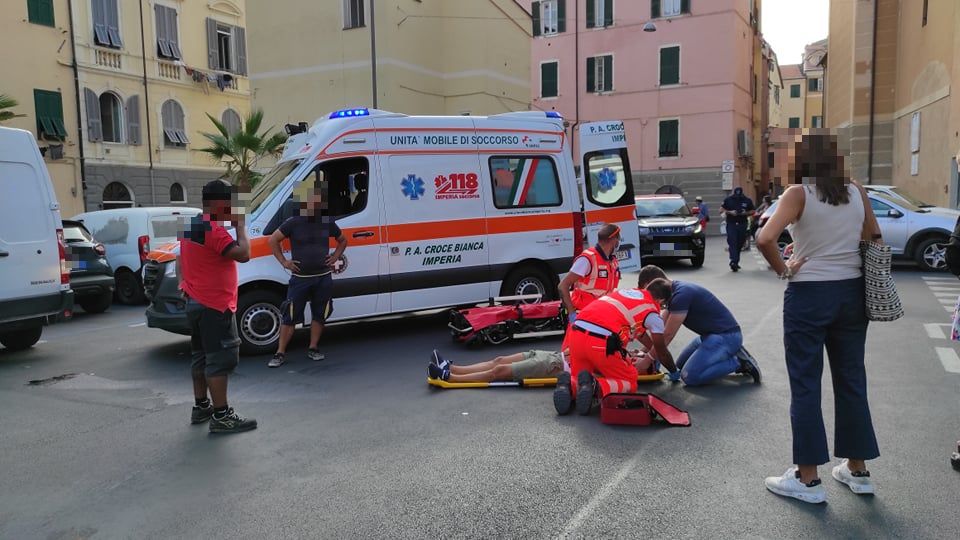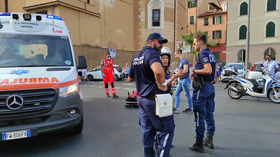 A causa dell’impatto, l’uomo alla guida dello scooter è rovinato a terra. Sul posto è immediatamente giunta una ambulanza della Croce Bianca di Imperia.