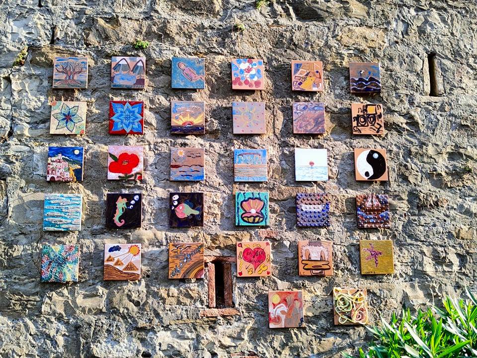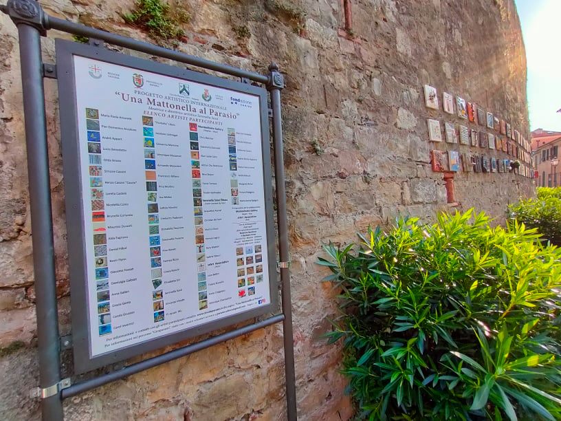 Sono 98 le mattonelle realizzate da artisti coinvolti a livello internazionale da Serenella Sossi e membri di comunità terapeutiche locali, che hanno donato le loro opere.