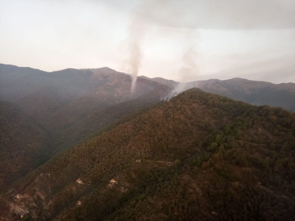 Fiamme anche nell’entroterra genovese, nella zona di Masone dove è in corso l’intervento dell’elicottero regionale decollato da Genova.