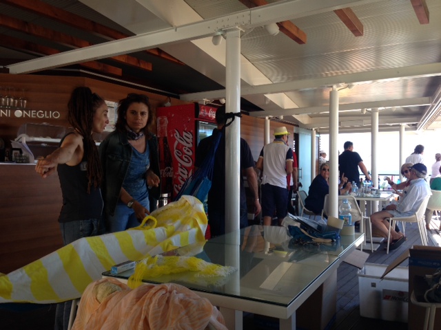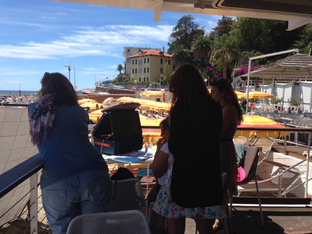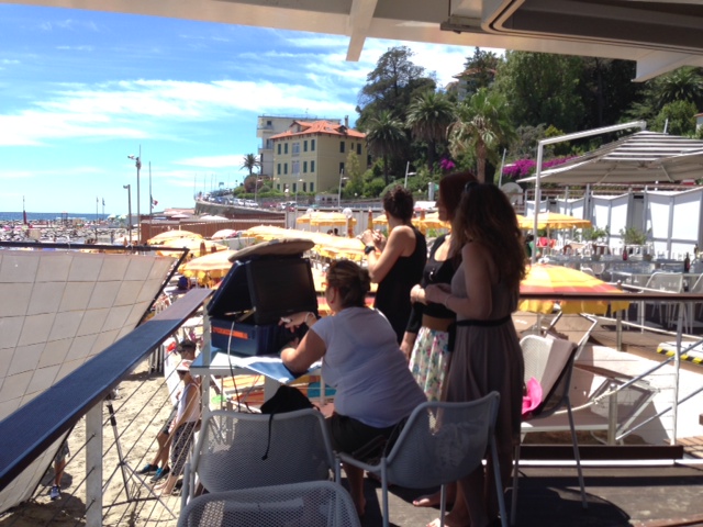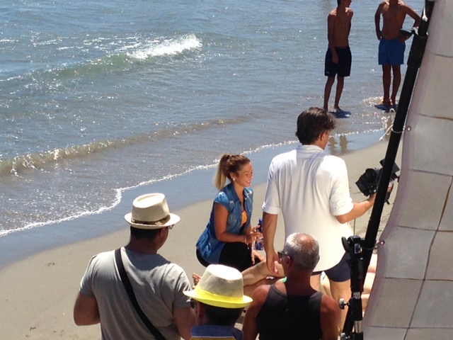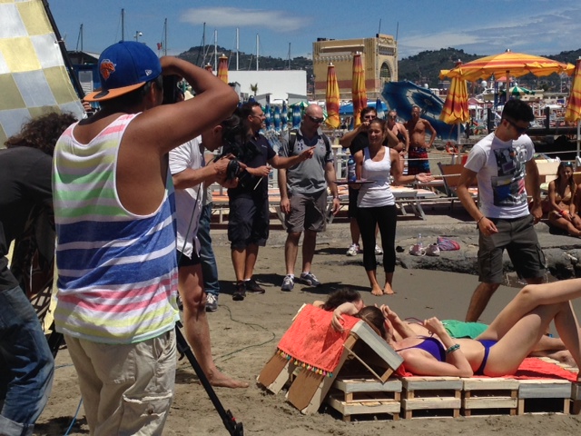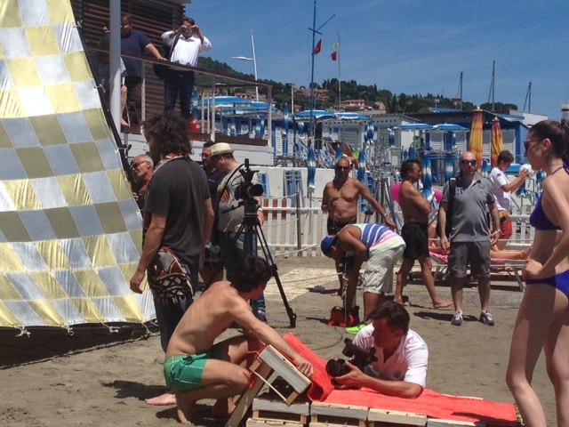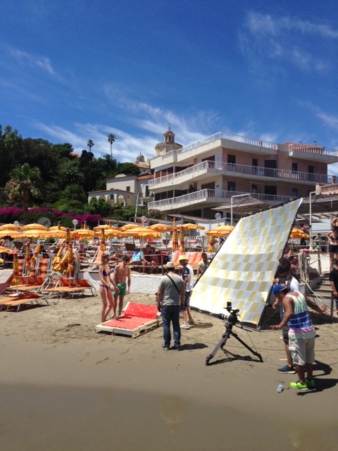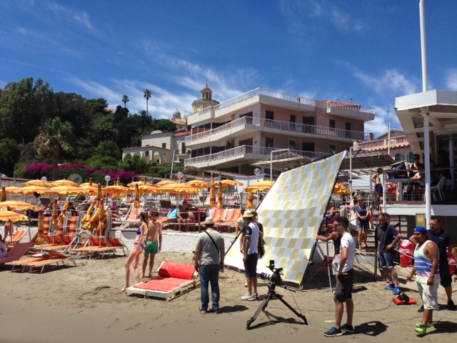 Lo stabilimento balneare Bagni Oneglio ha ospitato questa mattina il set per il nuovo spot pubblicitario della Santal, la nota marca di succhi di frutta. La troupe è arrivata a Imperia intorno alle 8 del mattino e, dopo alcune ore dedicate al montaggio del set e al trucco, ha iniziato a girare lo spot. A sorpresa è stata coinvolta nelle riprese anche la giovane imperiese Giorgia Bencardino, dipendente dei Bagni Oneglio, che ha vestito i panni di una cameriera. Le riprese sono terminate intorno alle 15.30. La troupe si trasferirà successivamente a San Lorenzo al Mare e a Pietrabruna per girare le ultime scene dello spot pubblicitario che andrà in onda la prossima settimana sui canali Mediaset.