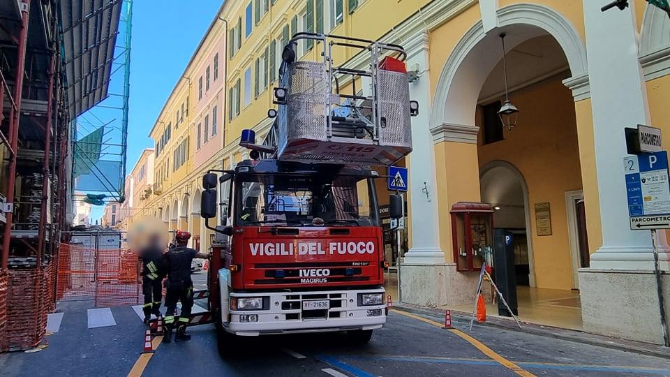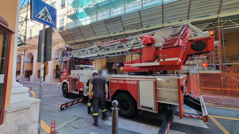 Nuovo intervento dei Vigili del Fuoco nel pomeriggio di oggi a Imperia. A poco tempo di distanza dal soccorso alla coppia di tedeschi che si trovavano in difficoltà al largo della Galeazza, fortunatamente tornati a riva senza riportare conseguenze, i pompieri sono intervenuti in via Bonfante per via della caduta di vetri in strada.