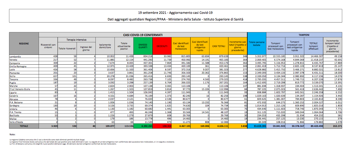 - dimessi / guariti 4.392.265 (+ 3.314)