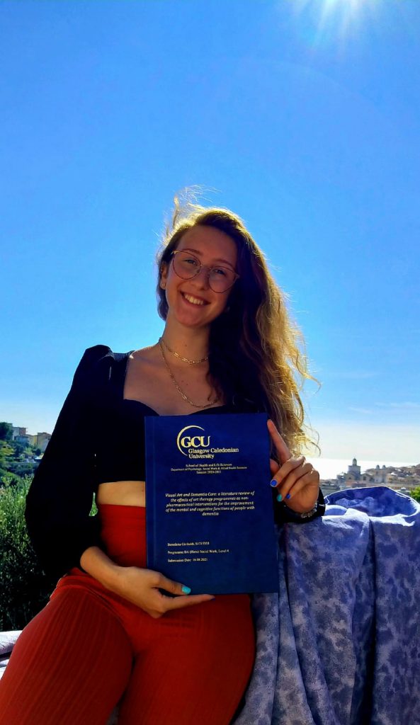 Benedetta, infatti, dopo la maturità al Liceo Classico di Imperia, è volata prima in Galles per un anno come au-pair in una famiglia per approfondire le proprie competenze nella lingua inglese e poi a Glasgow per iscriversi al Corso di Laurea Magistrale in Social Work (Servizi Sociali), laureandosi, nel mese di settembre 2021, con il massimo del voti.