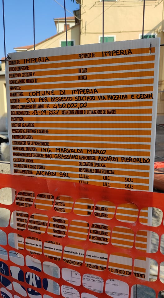 Sono iniziati nei giorni scorsi i lavori per il dissesto del selciato di Via Mazzini e per il cedimento della condotta delle acque miste nel tratto tra Via Cascione e la rotatoria tra Via Martiri della Liberta, Via Armanna inferiore e Via Mazzini.