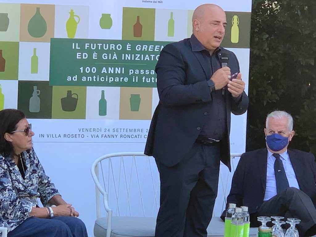 Sottolinea Paolo Strescino: “Oggi viviamo un’emozione e condividere questo momento con mio papà, mia sorella e tanti collaboratori, insieme a un partner di eccezione, che è Verallia, che non può che onorare i centro anni della Strescino. Siamo in una location meravigliosa, simbolo della nostra terra ed è un momento di festa. Tutti quelli che sono qui oggi ci onorano. Strescino ha scelto negli anni di essere a fianco di realtà che si impegnano per l’ambiente e per questo abbiamo anche scelto una linea verde, che nel “Green Jar” vede il simbolo del riciclo“.