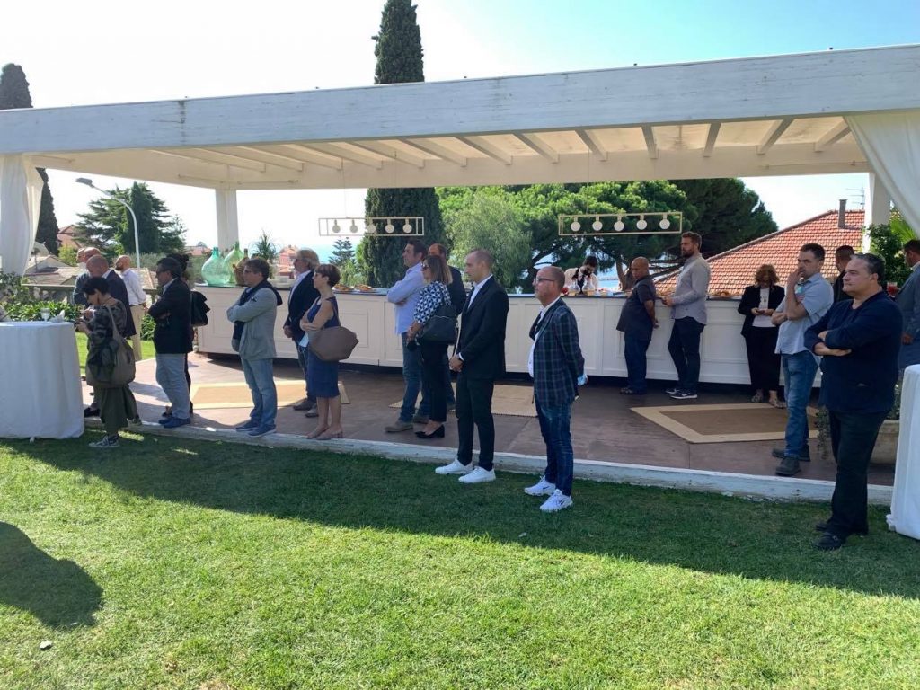 A fare gli onori di casa, il Cavalier Pasquale Strescino, presidente e figlio del fondatore, Sara e Paolo Strescino, amministratori della società e Alessandro Bocchio, direttore commerciale e marketing di Verallia Italia, partner di riferimento dell’azienda imperiese.