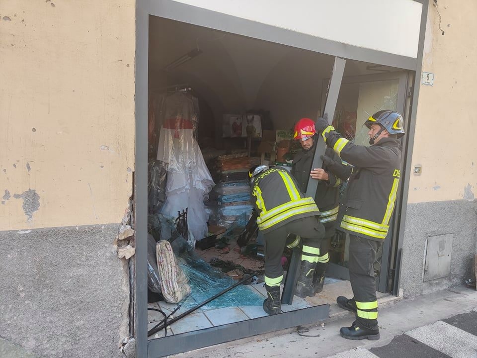 A bordo dell’auto una donna che, secondo quanto ricostruito, in fase di manovra per uscire dal parcheggio antistante, non sarebbe riuscita, forse per un guasto, a frenare la corsa della vettura, schiantatasi poi contro la vetrina di un negozio, sfondandola.