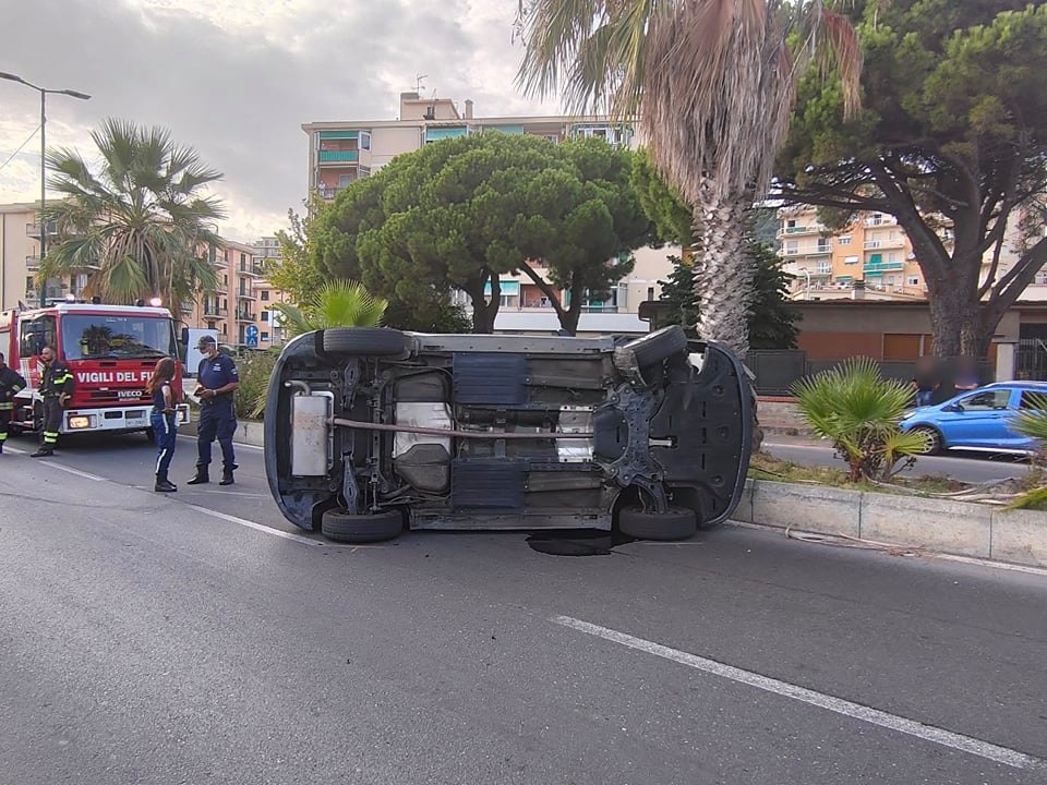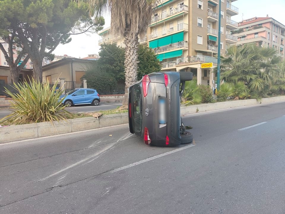 Imperia: auto si cappotta sul Lungomare Vespucci, ipotesi pirata della strada