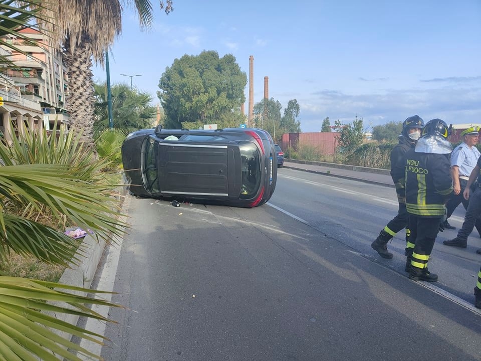 Incidente stradale questo pomeriggio, 25 settembre, sul Lungomare Vespucci, a Imperia. Un’auto, con a bordo una famiglia, papà, mamma e i due figli piccoli, si è cappottata per cause ancora in fase di accertamento.