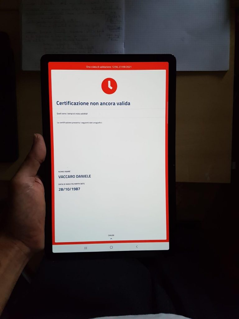 L’app di verifica, infatti, segnalava un errore e indicava che la certificazione non è ancora valida. Di conseguenza, con mio grande rammarico, non sono potuto accedere a scuola.