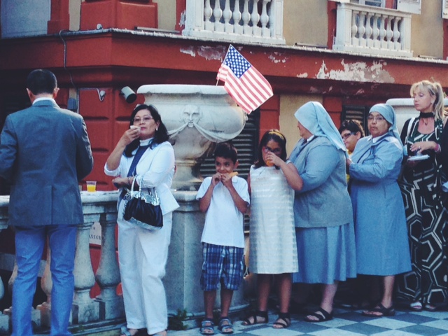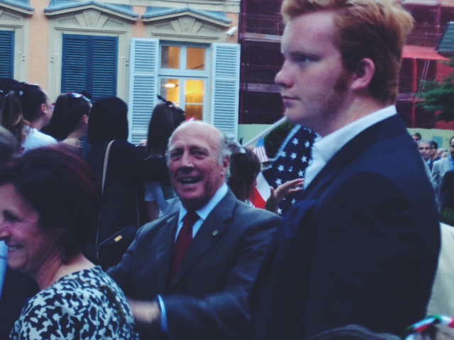 “Saluto gli Imperiesi che sono molto vicini agli Stati Uniti visto che sono gemellati con una città come Newport, Rhode Island. So da varie fonti che il gemellaggio con Newport sta andando benissimo. Vi porgo un saluto proprio oggi perché abbiamo festeggiato a Genova e celebrato il 238 anniversario dell’ Indipendenza degli Stati Uniti d’America ed è una festa che mi piace condividere con tutti i territori su cui esercito la mia funzione tra cui la città e la Provincia di Imperia .