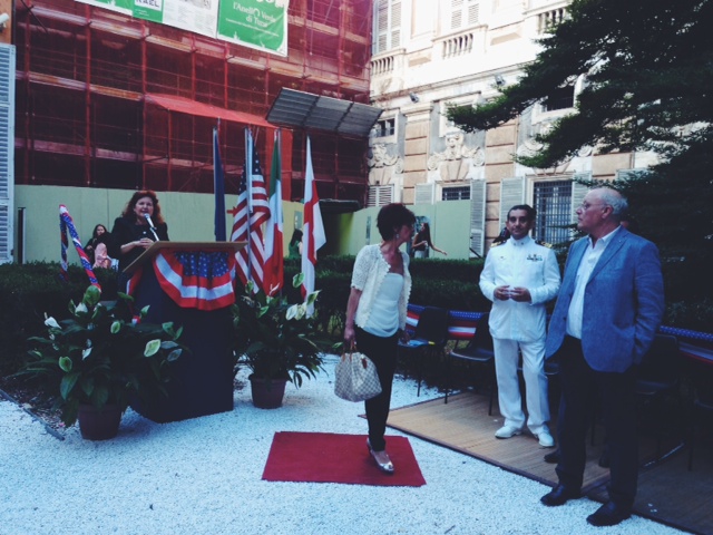 Si è tenuta nei giorni scorsi presso il Palazzo Bianco di Genova la cerimonia per il 238° anniversario dell’Indipendente Day, la versione italiana del luglio americano, giorno dell’indipendenza degli Stati Uniti d’America. All’evento, fortemente voluto dalla Console d’America a Genova Anna Maria Saiano, era presente anche un inviato di ImperiaPost che ha documentato con foto e video tutta la cerimonia. Presenti tra gli altri, oltre ai rappresentanti delle forze dell’ordine, il Console Generale Americano di Milano uscente Kyle Scott, il Sindaco di Genova Marco Doria, il vice sindaco Stefano Bernini, Enrico De Barbieri, console onorario del Sudafrica, Giorgio Giorgi, console onorario dell’Ucraina, e Giovanni Guicciardi, console generale della Turchia.