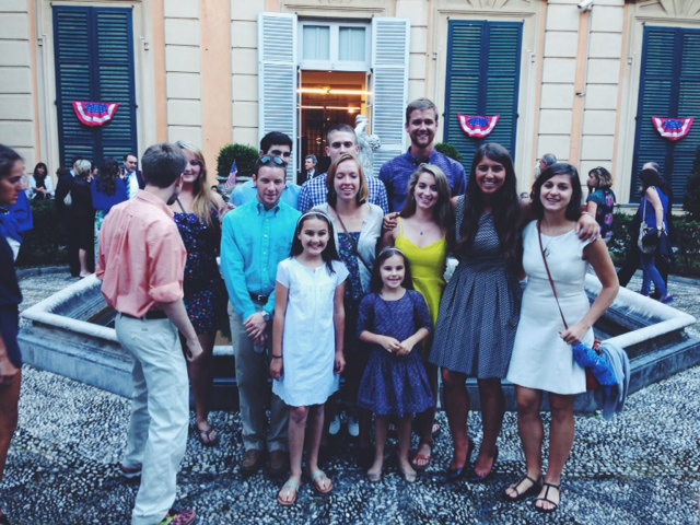 Genova e tutta la Liguria sono ricchi di storia. Colombo, uomo che per primo esplorò le sponde americane apprese il mestiere in questo grande porto. Ondate di immigrati italiani si sono imbarcati da Genova, La Spezia, Savona ed Imperia verso l’America, e la nostra nazione deve molto del suo patrimonio al loro aiuto. Essi ed i loro discendenti hanno contribuito a formare la nazione e renderla ciò che è oggi e quindi i legami storici tra Italia ed America sono molto importanti. Dopo tre anni di mandato il mio soggiorno con la mia famiglia e’ quai giunto alla fine e da parte di tutti noi voglio dirvi che questa terra meravigliosa ci mancherà, ci mancherà la sua gente ricca di ispirazione e ricorderemo per sempre i numerosi amici che abbiamo incontrato. L’avere rappresentato il mio paese qui in Italia è stato l’onore di una vita. Noi siamo onorati di celebrare questa festa insieme al popolo italiano e siamo onorati di chiamarvi amici.”
