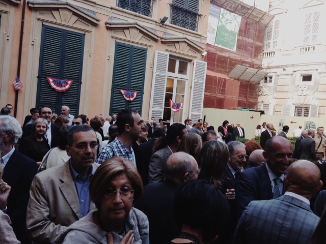 Intervento Sindaco di Genova Marco Doria. ” Esiste una visione mitica degli Stati Uniti d’America. Nella dichiarazione di indipendenza si trova il concetto della ricerca di felicità della persona. Come paese facciamo parte di un mondo privilegiati e allora il senso di responsabilità che ci richiama alla migliore tradizione del pensiero statunitense ma anche italiano, e penso ad un genovese coma Mazzini ci richiama ai doveri. Ai doveri individuali e collettivi, della comunità e dei popoli e dei doveri degli stati. Averli presenti ci fa essere migliori cittadini e migliori eredi delle nostre migliori tradizioni e migliori cittadini di un mondo multipolare oggi”.