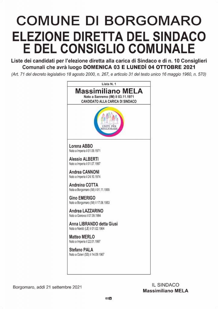 Anche a Borgomaro ricandidatura in solitaria per il sindaco uscente Massimiliano Mela. Che spiega: “Spero che la mia candidatura sia il bene di Borgomaro, Abbiamo cercato di fare il meglio in questi anni, con vari progetti, fra cui l’ampliamento della scuola. Ora stiamo lavorando per sistemare la frana di Ville San Pietro e abbiamo ottenuto altri finanziamenti per questo. Sono sette frazioni e il capoluogo, con problemi diversi fra acquedotti e fognature. Ci vuole tanta passione, ma è stata un’esperienza bellissima, grazie anche ai collaboratori in Consiglio, che mi hanno supportato. E’ stato un lavoro pensante, ma gratificante. Ci vuole il sostegno della gente per portare avanti progetti importanti. Abbiamo ricevuto 960 mila euro per la strada alternativa per il ricovero e poi puntiamo su nuovi parcheggi per accogliere anche i turisti richiamati dall’albergo diffuso aperto qui. Servono parcheggi nel capoluogo e nelle frazioni”.