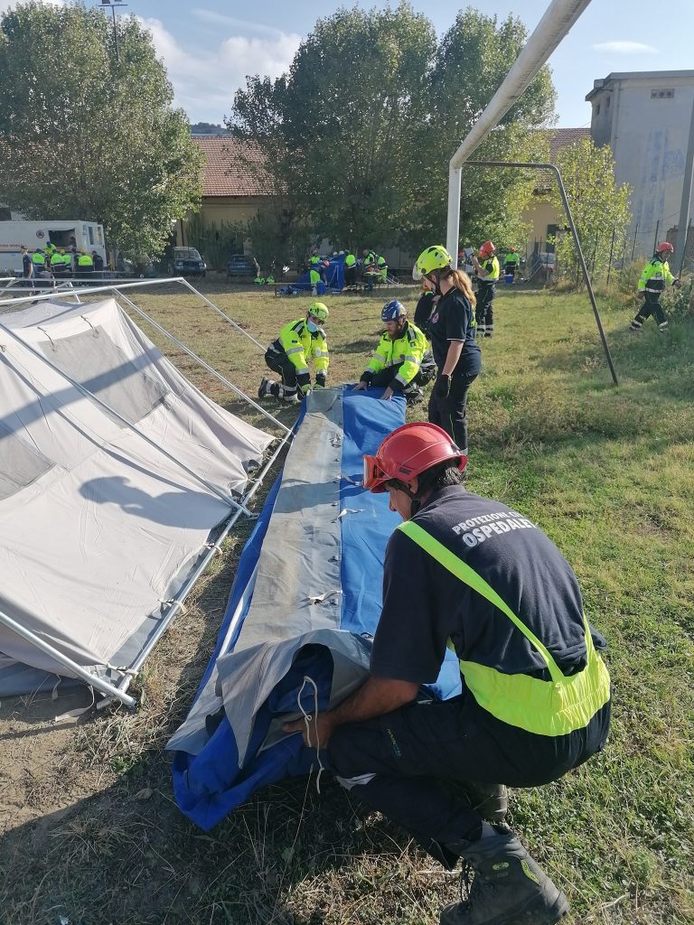 L’esame di oggi ha visto il montaggio e lo smontaggio tende, l’attività del Coc (Centro operativo comunale) e l’utilizzo delle motopompe e l’allestimento di un campo base in caso di emergenza.