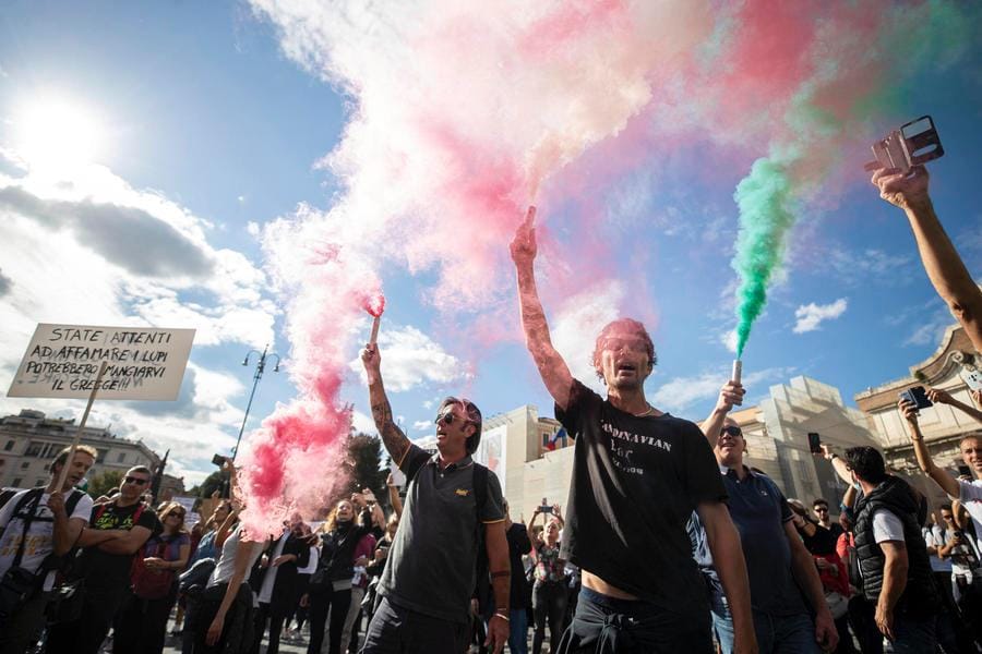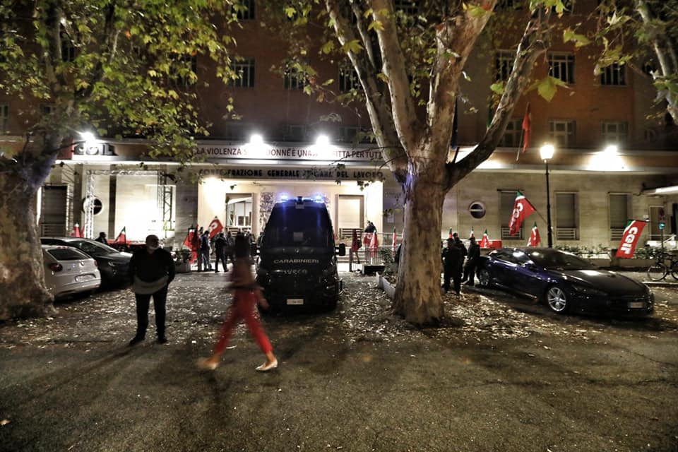 Alla manifestazione hanno preso parte circa 10 mila persone, radunatesi inizialmente in piazza del Popolo. In poco tempo, però, la situazione è presto degenerata. Decine di manifestanti, molti dei quali riconducibili ad ambienti di estrema destra (presenti, tra gli altri, come riportato dalle agenzie di stampa, anche i leader di Forza Nuova, Roberto Fiore e Giuliano Castellino), si sono spostati dapprima presso la sede della Cgil, assaltandola, e successivamente verso Montecitorio, dove sono iniziati gli scontri, anche molto violenti, con la Polizia, tra fumogeni e bombe carta.