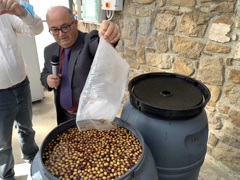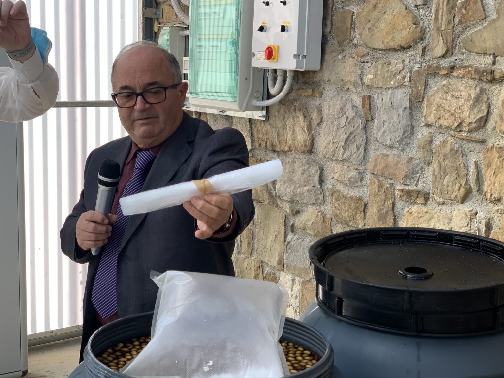 All’incontro sono intervenuti il Prof. Gino Ciafardini, docente di Microbiologia Agraria presso il DiAAA di Campobasso dell’Università del Molise (UNIMOL), Paolo Anselmi, Presidente di Oroliguria, Pasquale Restuccia, Agronomo di CIPAT Imperia e Gianfranco Croese, Presidente Florcoop Sanremo. Le innovazioni proposte prevedono l’impiego di prototipi sperimentali di “gas bag” per impedire la crescita del biofilm microbico dannoso per le olive Taggiasche in salamoia e l’impiego di prototipi di “Fusti incamiciati” capaci di impedire la crescita del biofilm microbico sulle salamoie dell’oliva Taggiasca.