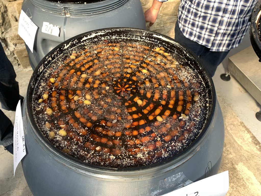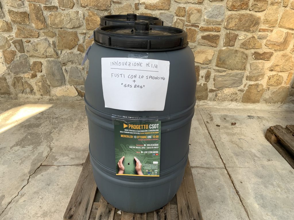 Sottolinea il prof. Gino Ciafardini: “Uno dei problemi più grossi nella trasformazione dell’0liva Taggisca in Liguria è la comparsa del biofilm sulla salamoia, che compare perché spesso entra dell’aria nei fusti e quindi dei lieviti crescono e danneggiano il prodotto. C’è un primo danno sulla qualità del prodotto e poi ci sono altri aspetti negativi dati dal fatto che si generano patogeni e funghi con tossine che possono essere cancerogene. Bisogna quindi impedire assolutamente la crescita di questo biofilm sulle salamoie e il progetto ha operato per trovare delle strategie in questo senso. Abbiamo provato due tecnologie: l’uso di atmosfera modificata, con produzione di anidride carbonica nei fusti e l’utilizzo di fusti incamiciati. In quest’ultimo caso, il prodotto resta protetto da un involucro e questo ha dato un risultato migliore rispetto a quello dell’atmosfera modificata, eseguita con i cosiddetti gas bag“.
