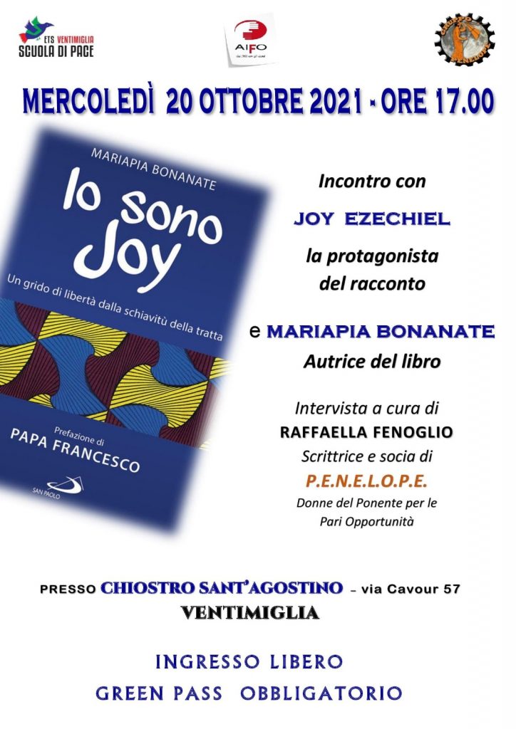L’incontro del 20 ottobre “IO SONO JOY” è non solo di denuncia di un “crimine contro l’umanità” come lo ha definito Papa Francesco che ha curato la prefazione, ma è esempio di incredibile forza e rinascita di una giovane nigeriana vittima della tratta per la prostituzione.